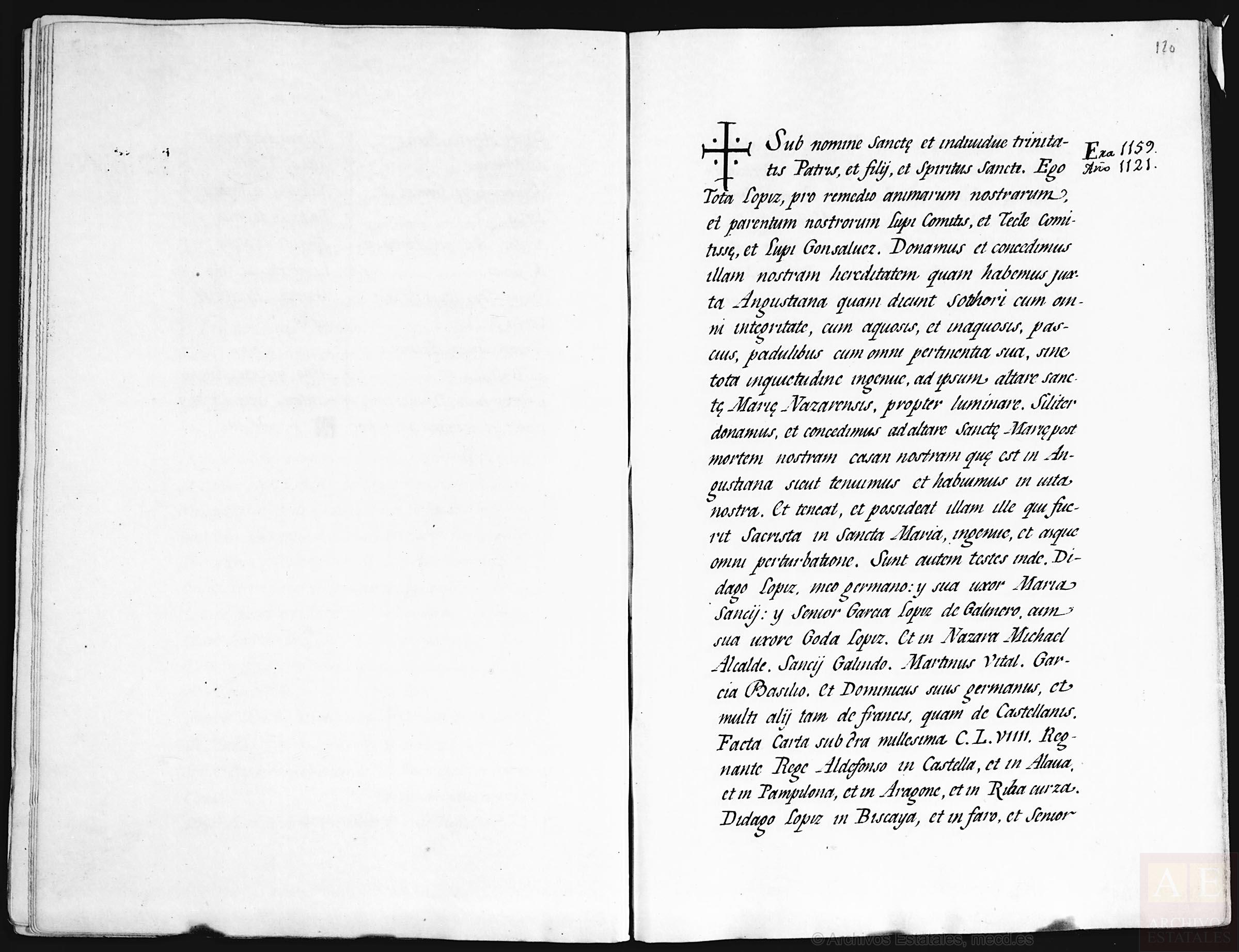 Testamento de Toda López 1121 – Cartulario de Santa María la Real de Nájera (AHN, códices, lib.105, ff. 120r, 120v. Consulta el documento completo